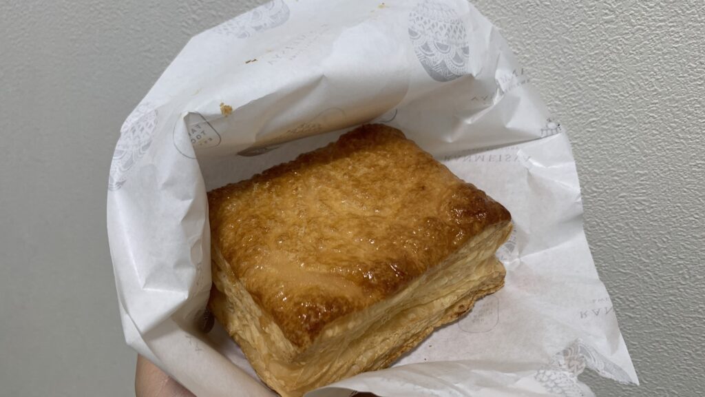 袋を開けると、バターがふわっと香り、こんがり焼けたパイ生地が食欲をそそります(^^)/